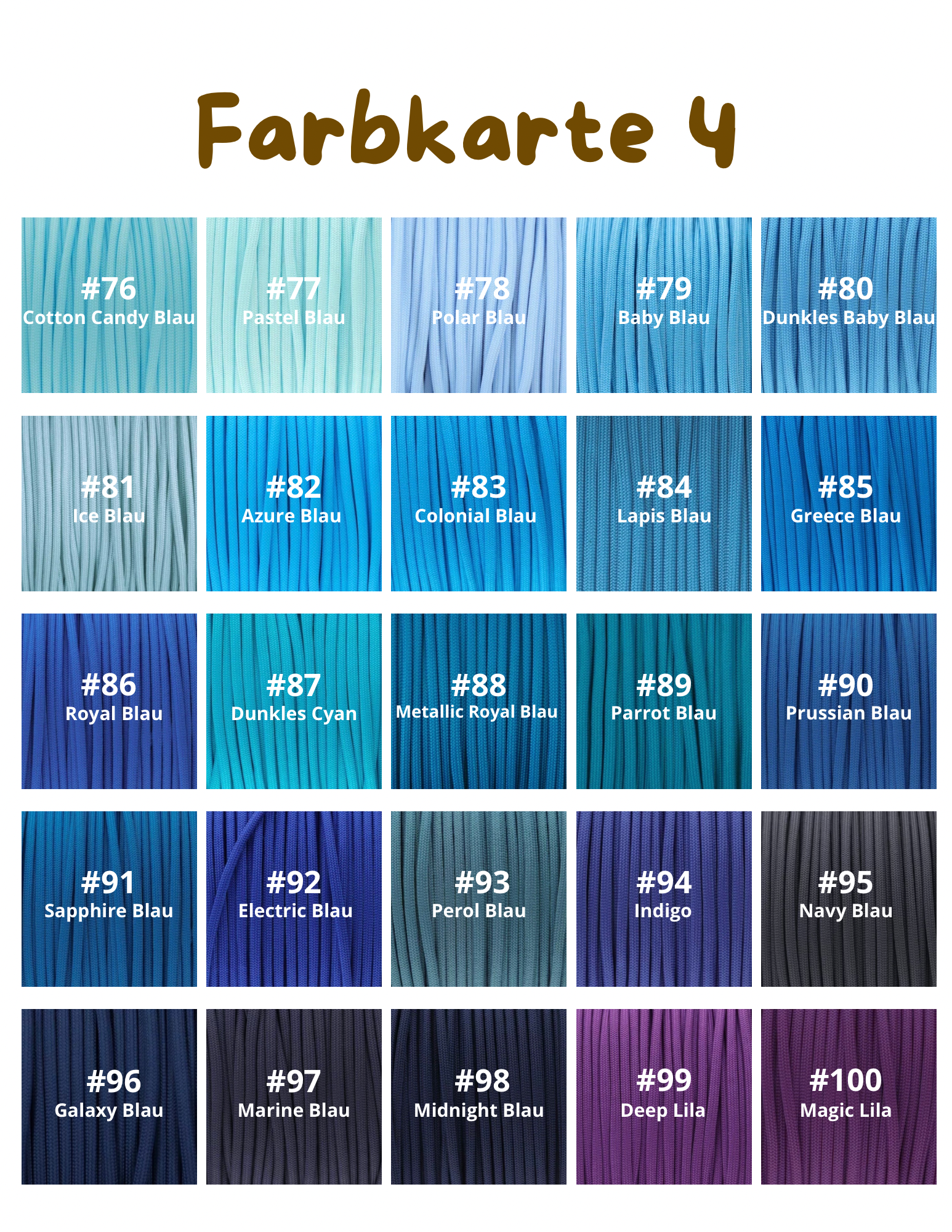 Gestalte deine Hundeleine individuell: Wähle bis zu vier Lieblingsfarben aus, um deine individuelle Traumleine in unserem Flechtmuster „Buddy“ zu kreieren. Neben den Farben des Paracords kannst du außerdem deine Gewünschte Länge der Leine und die Farbe der Beschläge angeben. Wichtig: Verrate uns auch das Gewicht deines Hundes, damit wir euch die passenden Karabiner aussuchen können.